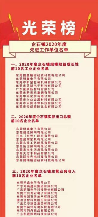 3月3日上午,企石鎮(zhèn)召開2020年度工作總結(jié)大會(huì),發(fā)布了《企石鎮(zhèn)2020年度先進(jìn)工作單位名單》,包括《2020 年度企石鎮(zhèn)規(guī)模效益成長性前10名工業(yè)企業(yè)名單》《2020 年度企石鎮(zhèn)實(shí)際出口總額前10名企業(yè)名單》《2020 年度企石鎮(zhèn)主營業(yè)務(wù)收入前10名企業(yè)名單》等10份名單。會(huì)議對(duì)2020年度企石鎮(zhèn)主營業(yè)務(wù)收入前10名企業(yè)進(jìn)行了現(xiàn)場表彰。新望公司有幸入列:企石鎮(zhèn)2020年度規(guī)模效益成長性前10名。