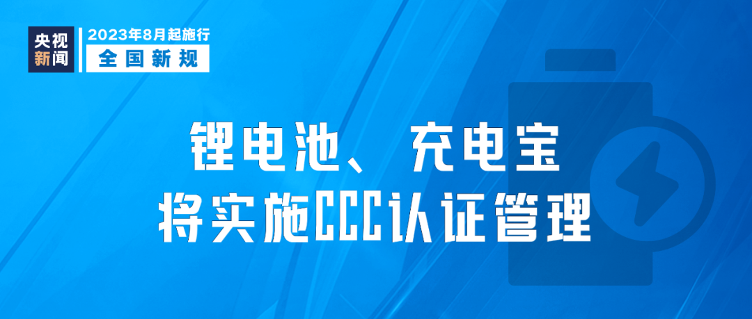 市場監(jiān)管總局發(fā)布公告,自2023年8月1日起,對鋰離子電池和電池組、移動電源實施CCC認證管理;自2024年8月1日起,未獲得CCC認證證書和標注認證標志的,不得出廠、銷售、進口或者在其他經營活動中使用。