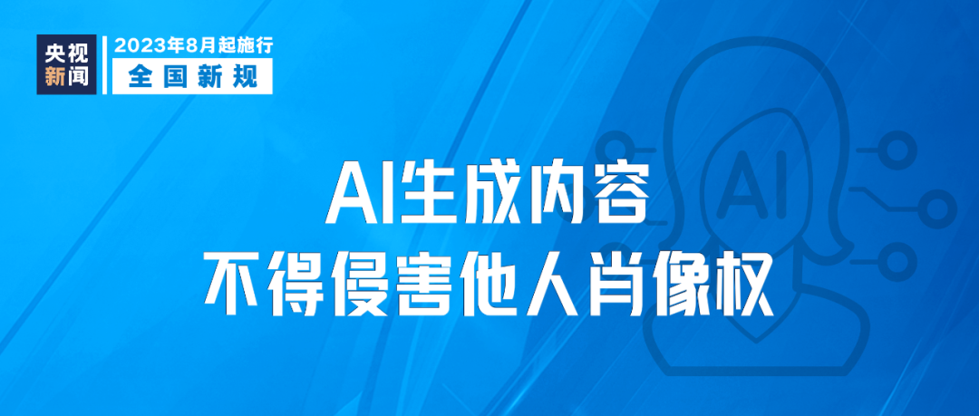 《生成式人工智能服務管理暫行辦法》8月15日起施行,提供和使用生成式人工智能服務應當尊重他人合法權益,不得危害他人身心健康,不得侵害他人肖像權、名譽權、榮譽權、隱私權和個人信息權益。